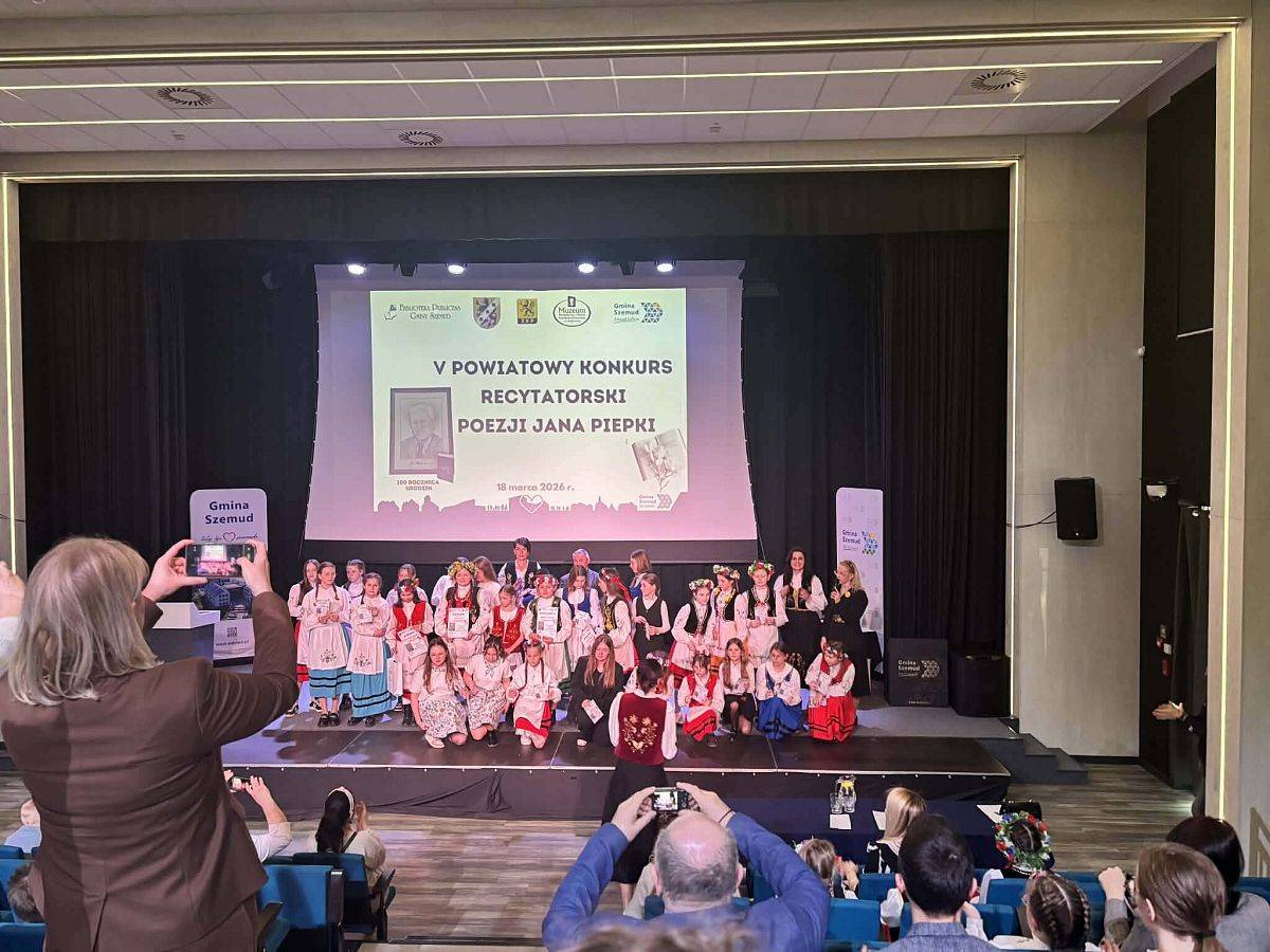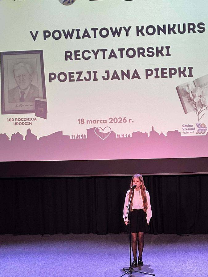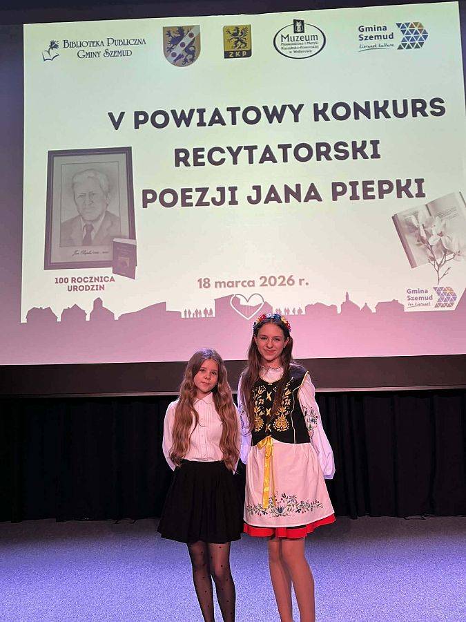 Uczennice naszej szkoły : Agata Jagła i Joanna Lewnau reprezentowały naszą szkołę w V Powiatowym Konkursie Recytatorskim Poezji Jana Piepki w Szemudzie. Brawo dla dziewczynek, które zaprezentowały wysoki poziom interpretacji tekstu mistrza Piepki, pięknie mówiły po kaszubsku. Joasia w kategorii klas IV- VI zajęła 3 miejsce. Gratulacje! Do ùzdrzeniô za rok