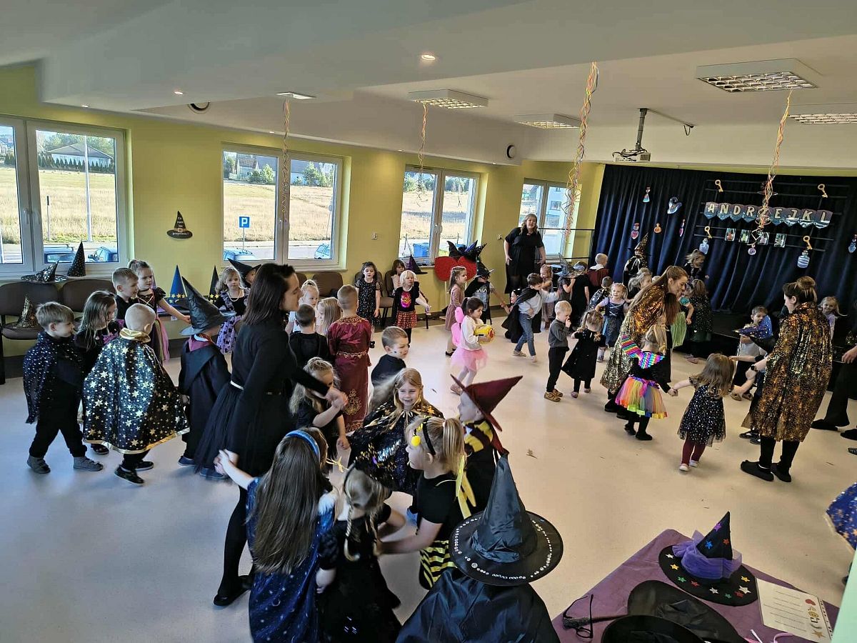Po pełnych emocji wróżbach przyszedł czas na tańce i śpiewy. Muzyka rozbrzmiewała w całym przedszkolu, a dzieci bawiły się, skacząc, wirując i tworząc wspólne korowody.