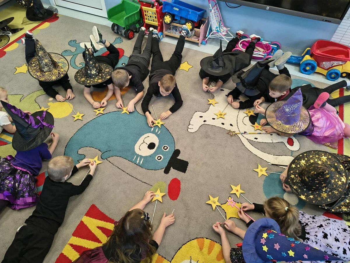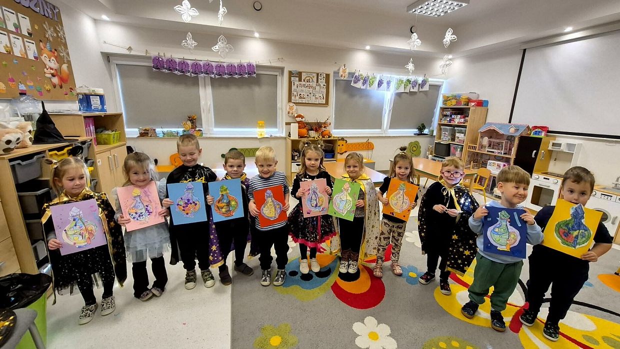 Od samego rana w salach panowała radosna atmosfera, a dzieci – pięknie poprzebierane w czarodziejów – nie mogły się doczekać zabawy.