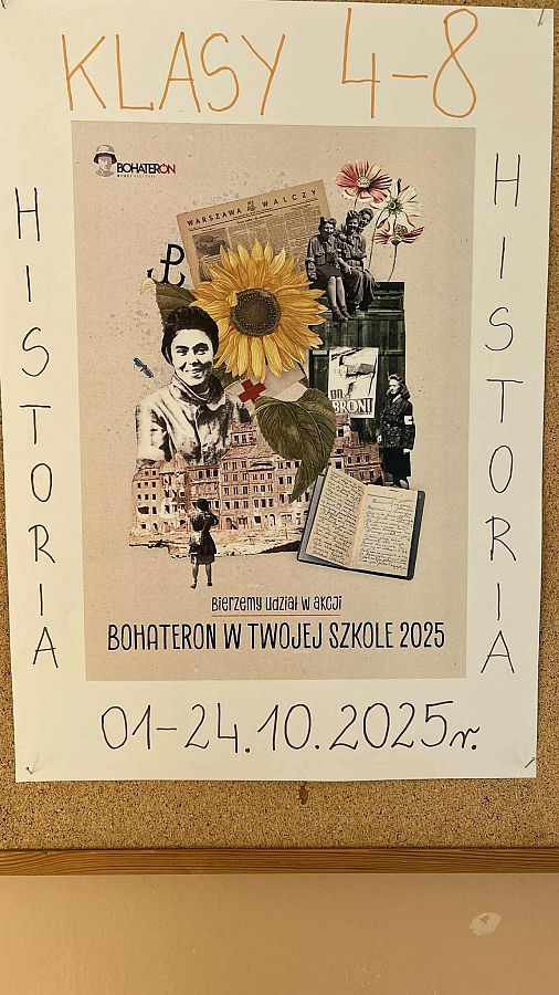 W dniach 01-24 października 2025r. uczniowie klas 4-8 pod opieką nauczycieli historii zaangażowali się w akcję BohaterON w Twojej Szkole, która jest częścią ogólnopolskiej kampanii BohaterON-włącz historię!, realizowanej pod patronatem Ministra Edukacji i Nauki.