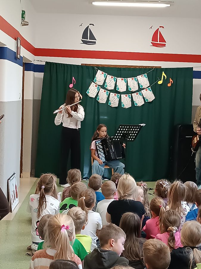 1 października 2015 roku w Zakrzewie obchodzono Dzień Muzyki. Z tej okazji uczniów klas 0-2 odwiedzili goście- ich starsi koledzy z Lini, aby zaprezentować swoje muzyczne talenty. Muzyczny apel uświetnili: Zosia Korzistka z klasy 8a, która zagrała na flecie poprzecznym, jej siostra- Lena Korzistka z klasy 5b, która zagrała na akordeonie oraz Wojtek Pionka z klasy 8a, grający na gitarze elektrycznej. Występ muzyków spotkał się z dużym zainteresowaniem młodszych dzieci. Miały możliwość na żywo poznać brzmienie instrumentów.