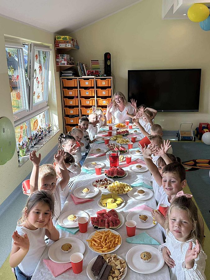 Dnia 19.09.2025 r. w Przedszkolu Samorządowym nr 1 obchodziliśmy wyjątkowe święto – Dzień Przedszkolaka! Dzieci bawiły się wesoło, tańczyły przy radosnej muzyce, a atmosfera była pełna uśmiechów. Każda grupa miała na sobie inny kolor bluzki oraz balonów, co dodało uroku całej uroczystości. Po intensywnych zabawach przyszedł czas na słodki poczęstunek, który zadowolił małych smakoszy. Na zakończenie każdy przedszkolak otrzymał prezent, który sprawił im ogromną radość. To był naprawdę niezapomniany dzień!