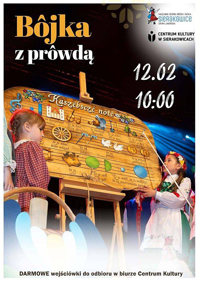 Dziś uczniowie uczęszczające na lekcje j. kaszubskiego zagościły w Centrum Kultury w Sierakowicach, gdzie obejrzały występ pt. "Bôjka z prôwdą" w wykonaniu grupy juniorskiej KZPiT w Sierakowicach.