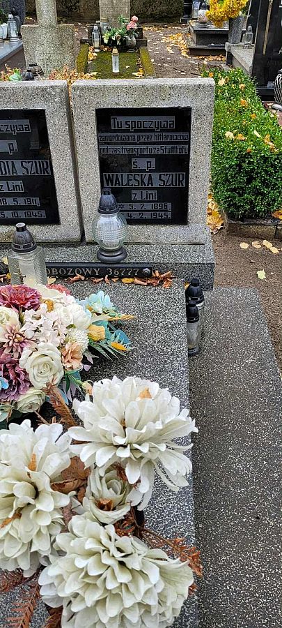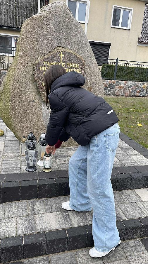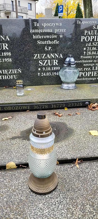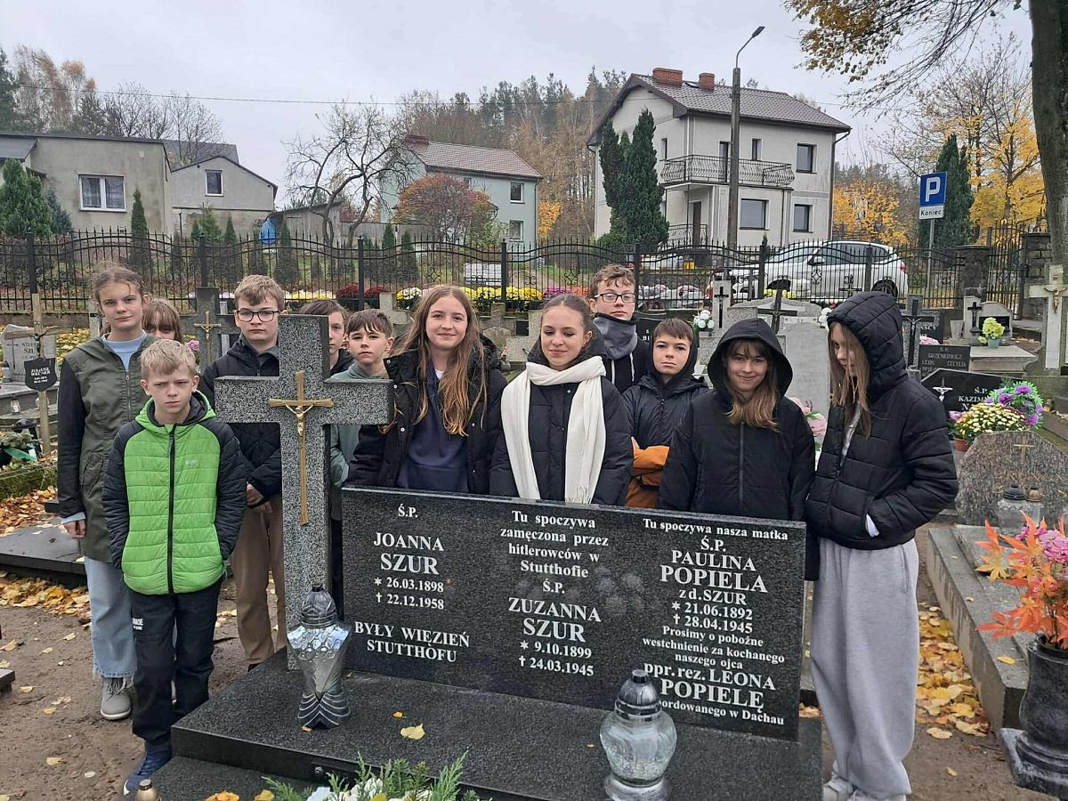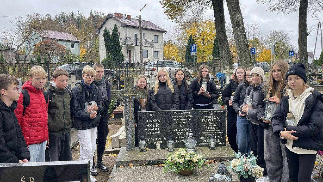 na grobach więźniarek obozu Stutthof (spoczywających na cmentarzu w Lini),