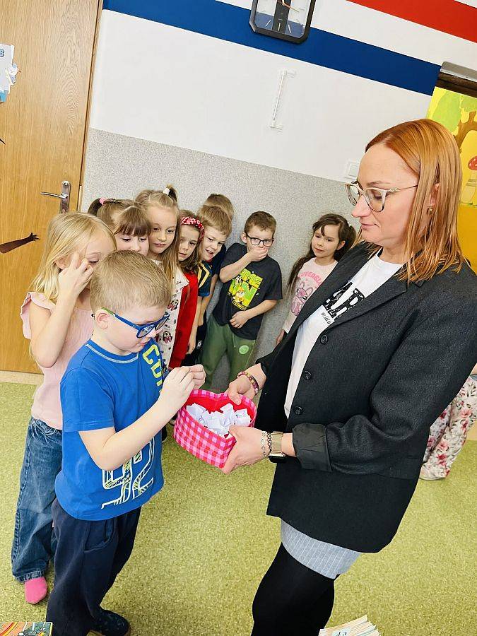„Randka w ciemno z książką” to akcja czytelnicza, która spotkała się z ogromnym zainteresowaniem wśród najmłodszych uczniów naszej szkoły. Dzieci losowały książeczki, które zabrały do domu na swoją „czytelniczą randkę”. Po lekturze podzielą się wrażeniami i przygotują krótką recenzję dla swoich koleżanek i kolegów.