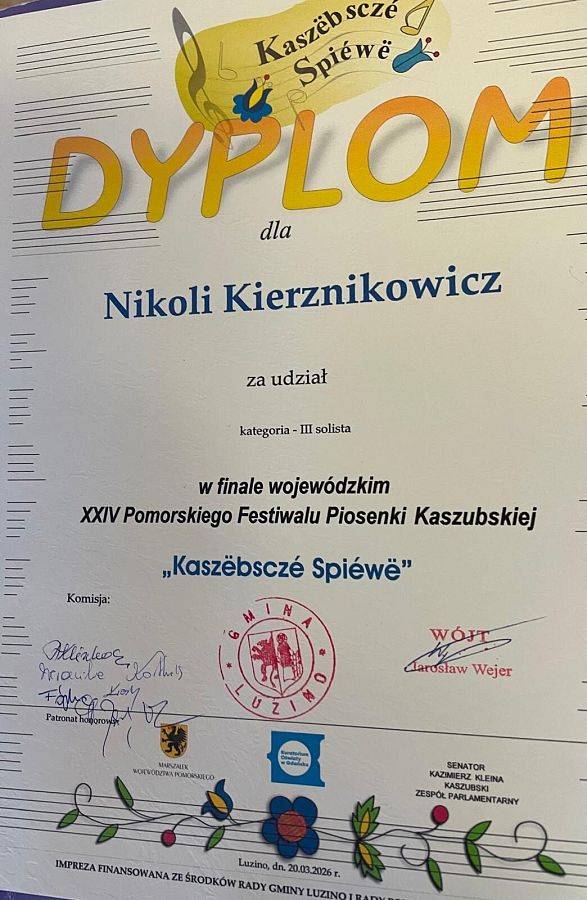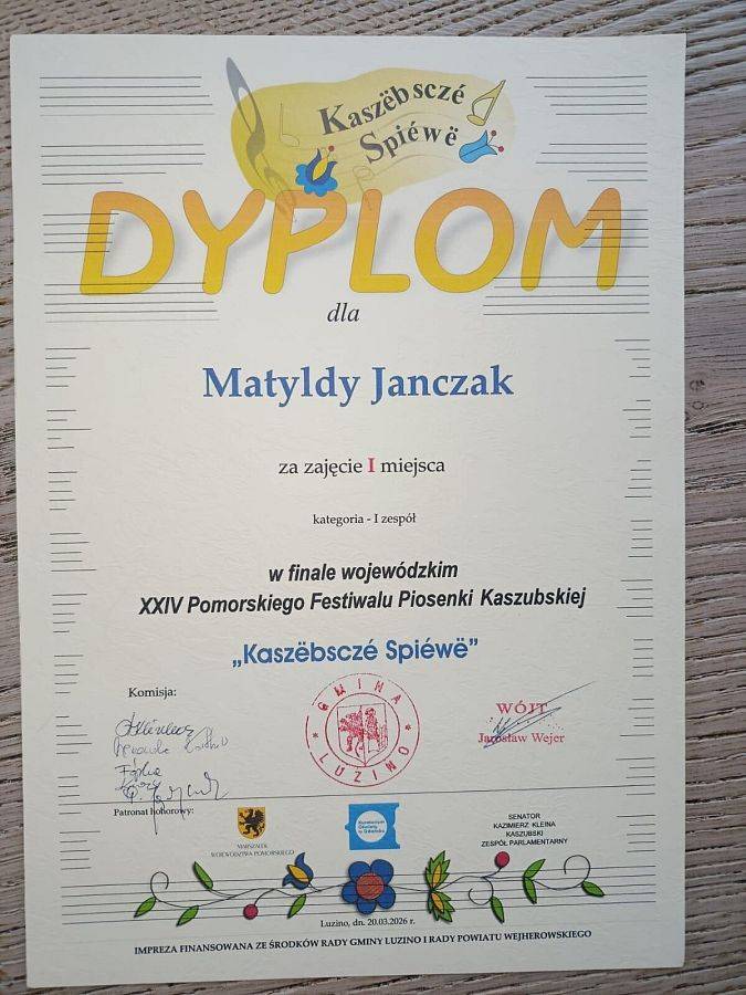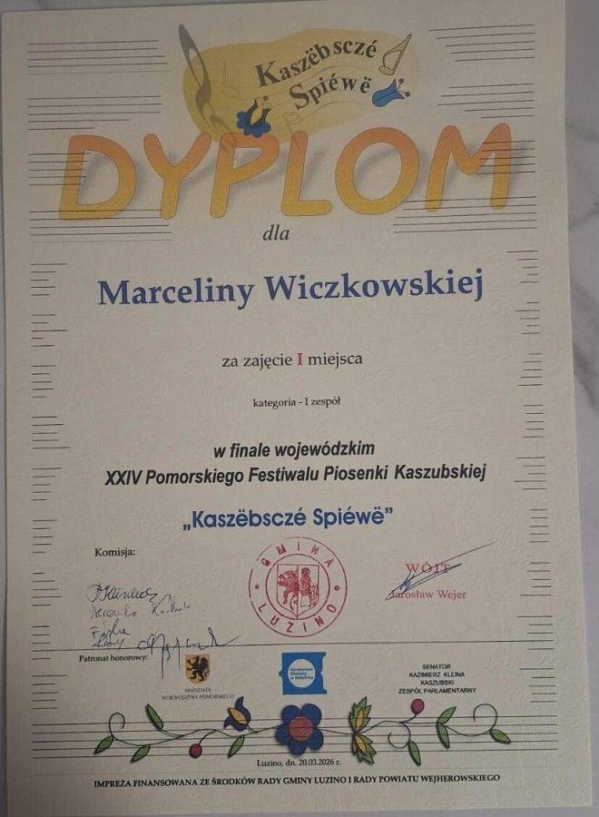 Sukces w XXIV Pomorskim Festiwalu Piosenki Kaszubskiej „Kaszëbsczé Spiéwë” w Luzinie