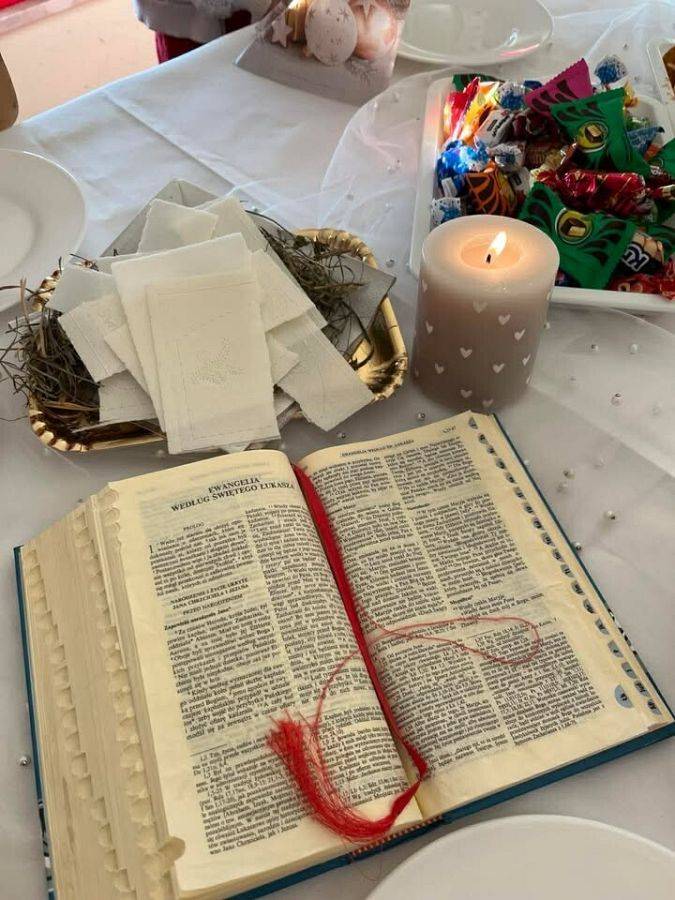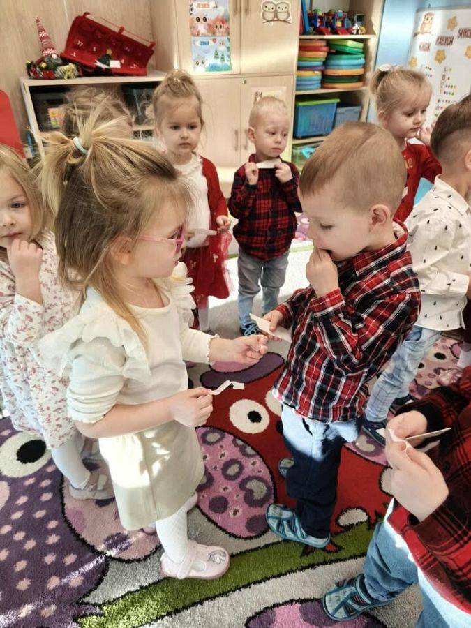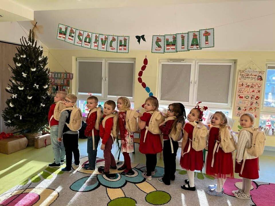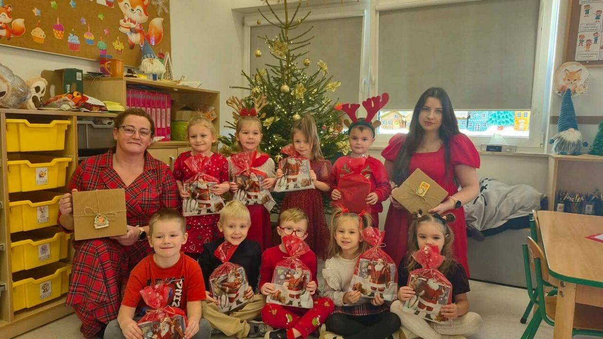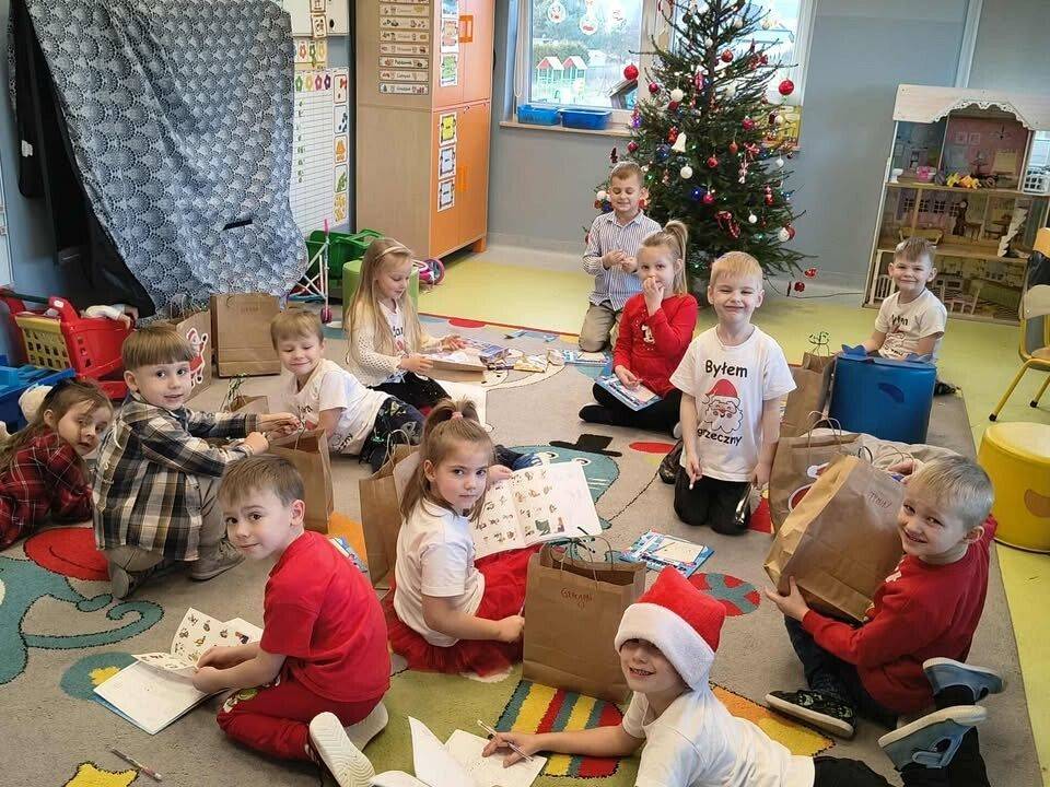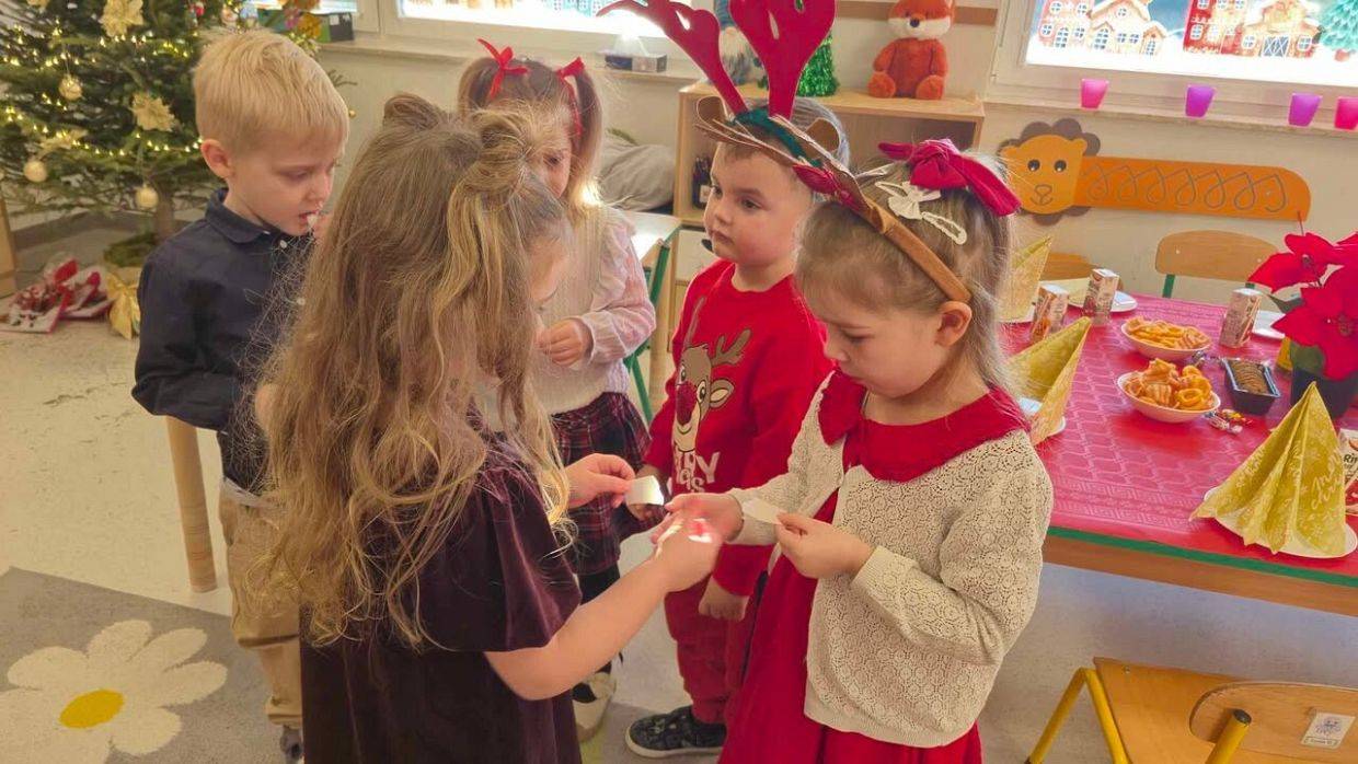 W naszym przedszkolu panowała wyjątkowa, świąteczna atmosfera. Dzieci uroczyście obchodziły Przedszkolną Wigilię, podczas której wspólnie śpiewały kolędy i pastorałki, dzieliły się opłatkiem oraz składały sobie serdeczne życzenia. Spotkanie przebiegało w klimacie radości, ciepła i wzajemnej życzliwości. Wigilijne obchody były dla dzieci pięknym przeżyciem, pełnym uśmiechów i pozytywnych emocji, a także okazją do poznania i pielęgnowania bożonarodzeniowych tradycji.