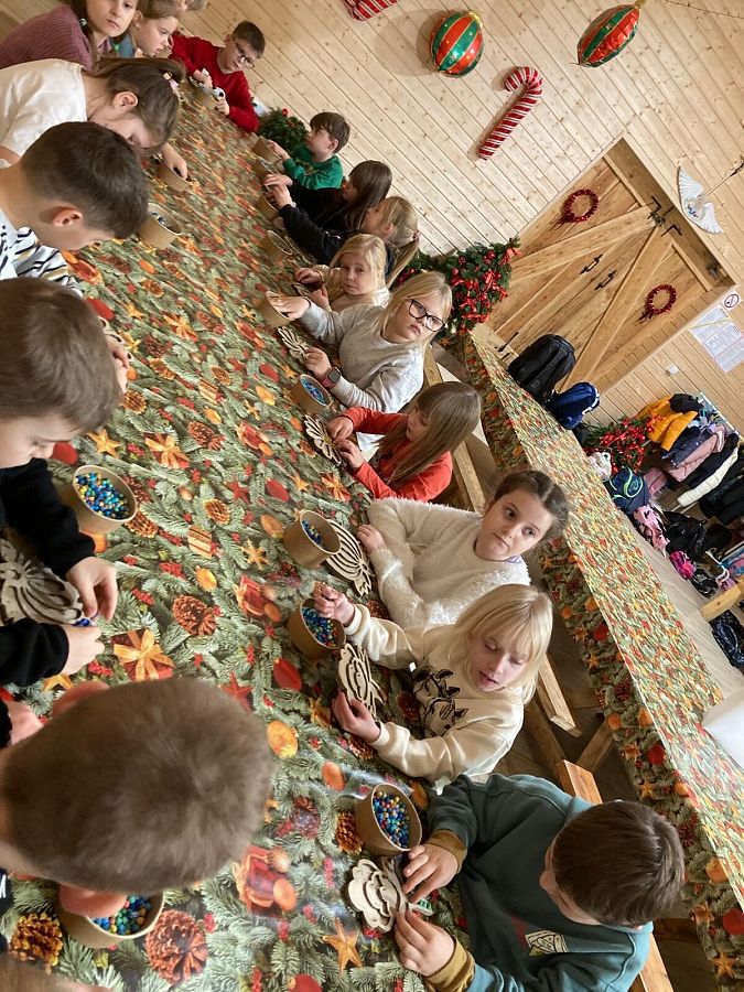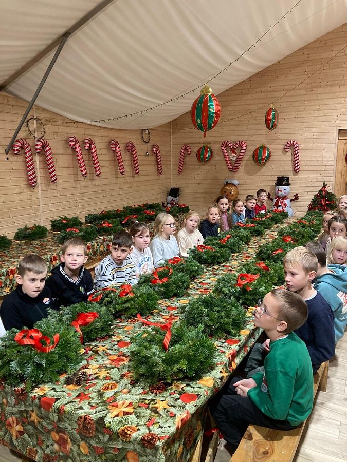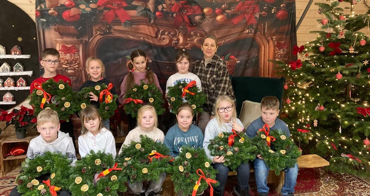 W poniedziałek 8 grudnia klasy drugie pojechały na świąteczne warsztaty do Leśnej Łączki w Gowidlinie. Na miejscu na dzieci czekało wiele atrakcji w świątecznym klimacie: dekorowanie wieńców świątecznych, otwieranie kalendarza adwentowego, przejażdżka wozem drabiniastym, karmienie danieli, eksperymenty, a także ciepła herbatka i drożdżówka. Dzieci wróciły bardzo zadowolone, a własnoręcznie udekorowane wieńce posłużą do świątecznej dekoracji domu.