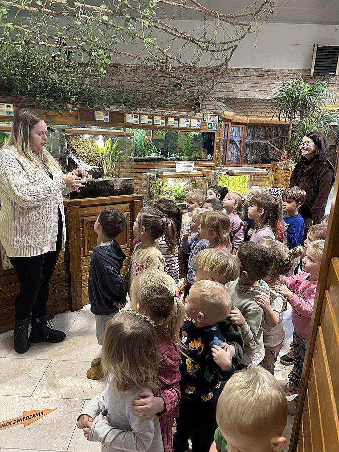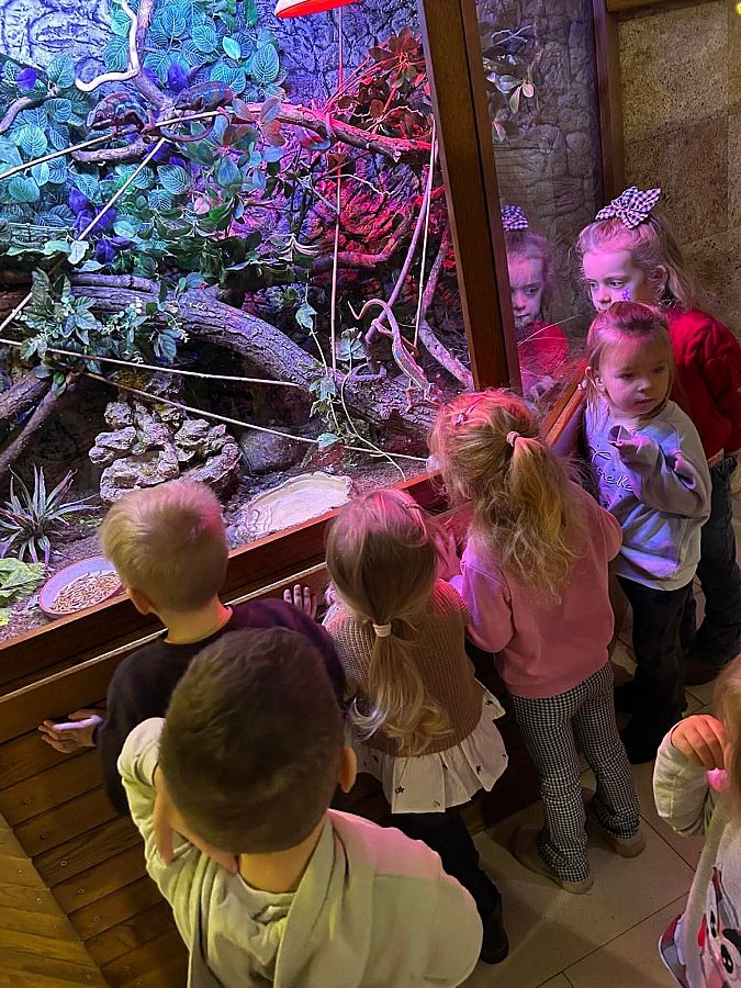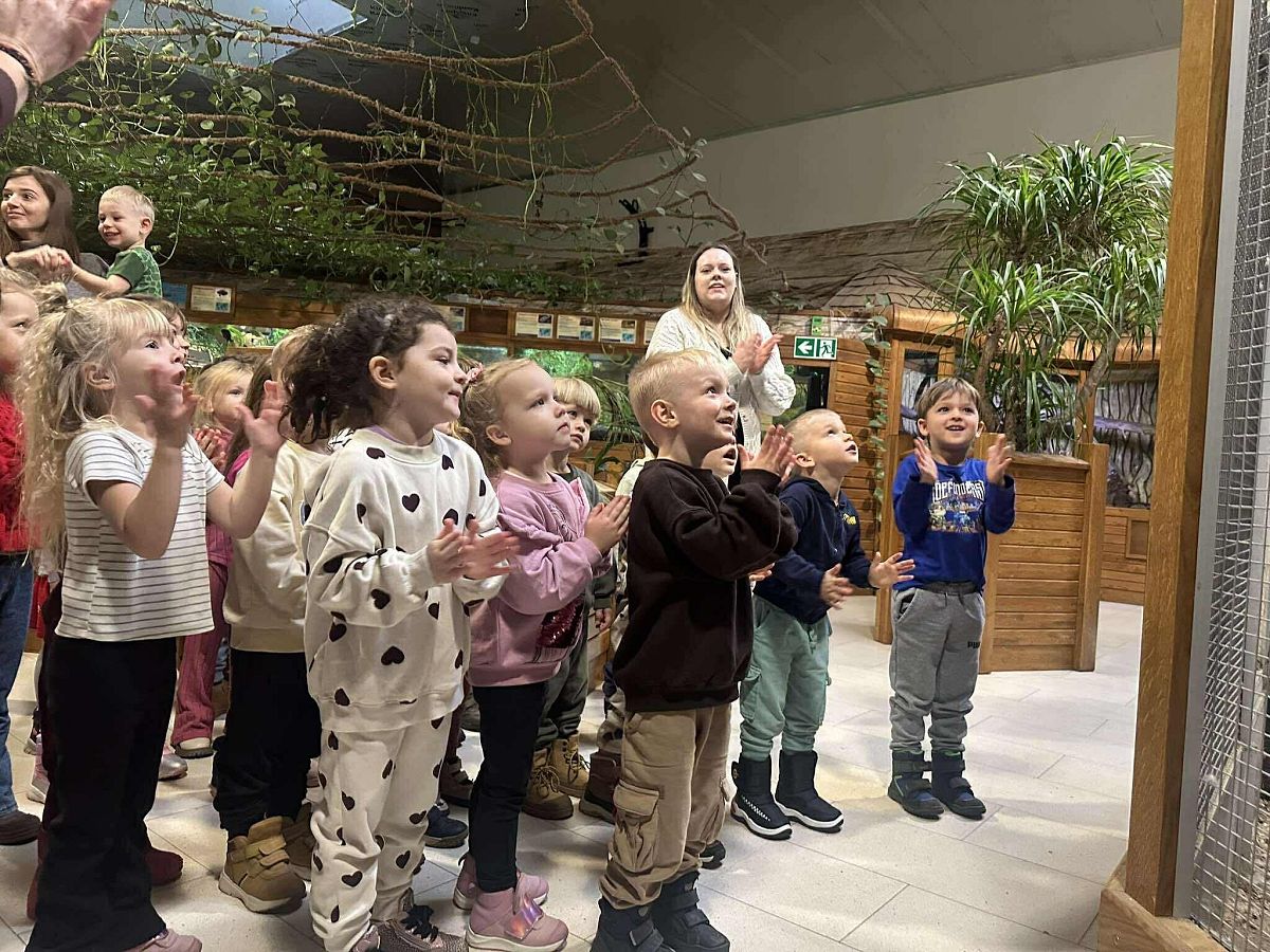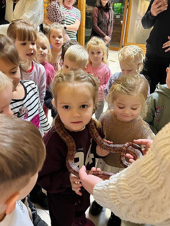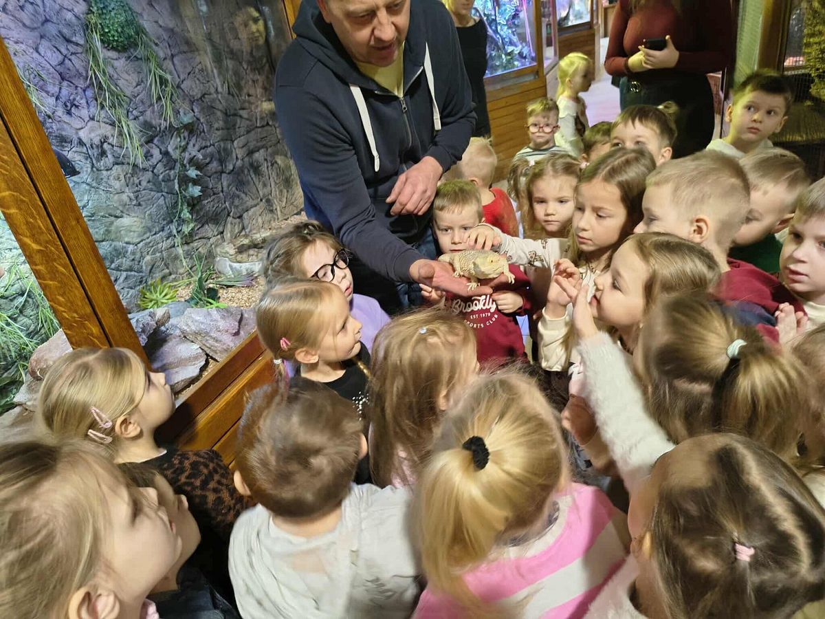 28.11.2025 - był pełen wrażeń, ponieważ całe przedszkole wybrało się na wycieczkę do ZOO Egzotyczne Kaszuby w Tuchlinie. Dzieci miały okazję poznać wiele nowych, niezwykłych gatunków zwierząt, a największą atrakcją okazała się możliwość dotknięcia żywych okazów – jaszczurki, węża oraz żółwia.