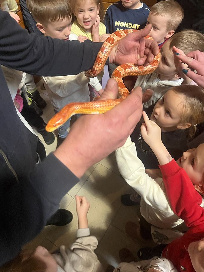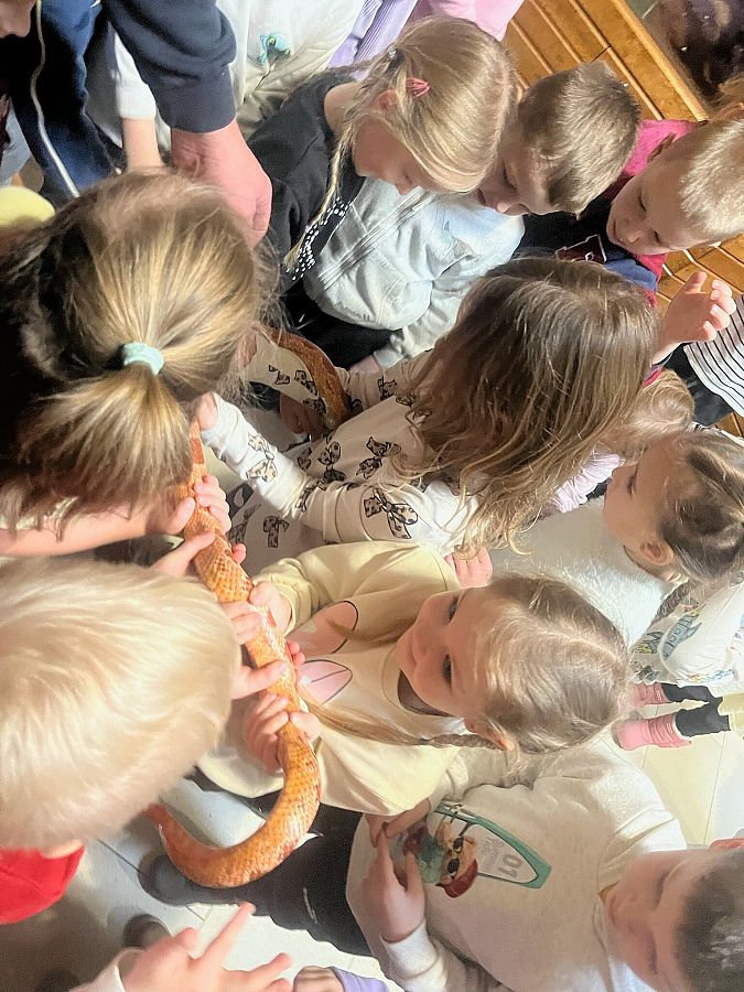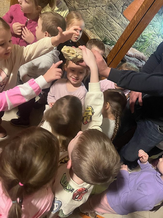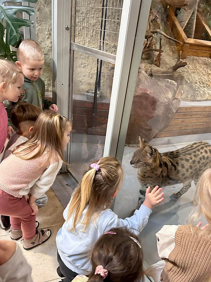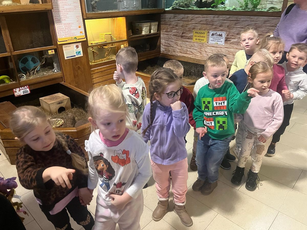 28.11.2025 - był pełen wrażeń, ponieważ całe przedszkole wybrało się na wycieczkę do ZOO Egzotyczne Kaszuby w Tuchlinie. Dzieci miały okazję poznać wiele nowych, niezwykłych gatunków zwierząt, a największą atrakcją okazała się możliwość dotknięcia żywych okazów – jaszczurki, węża oraz żółwia.