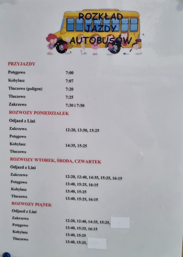 Rozkład jazdy autobusu szkolnego od 02.09.2025